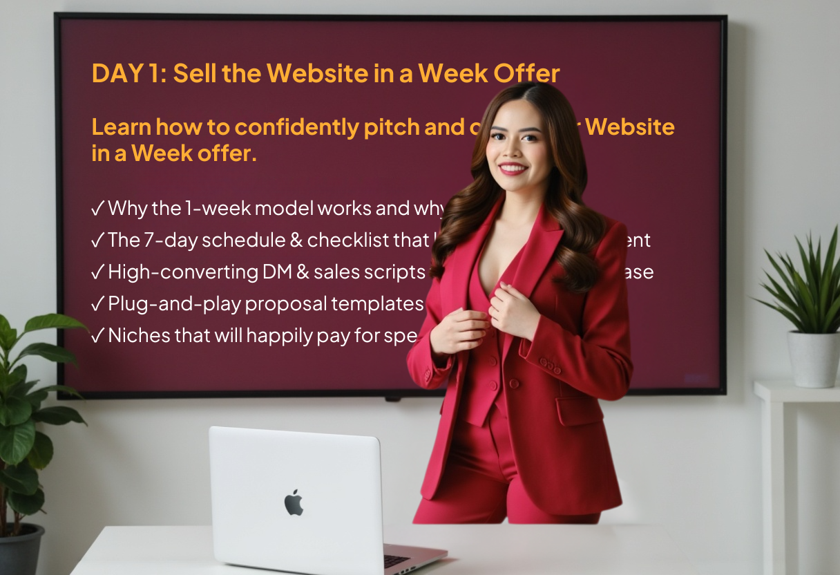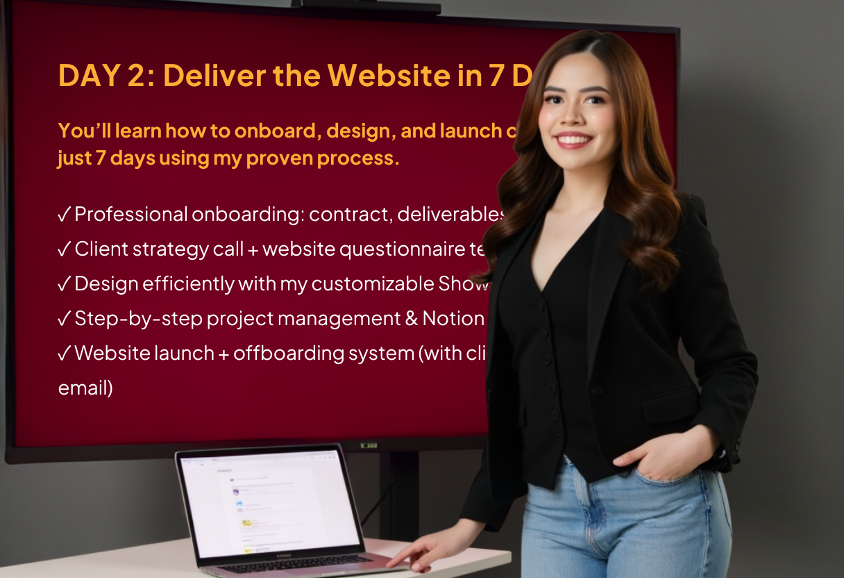 It’s a 2-day live intensive where I teach you how to sell, deliver, and scale ₱100K website projects even without coding experience.