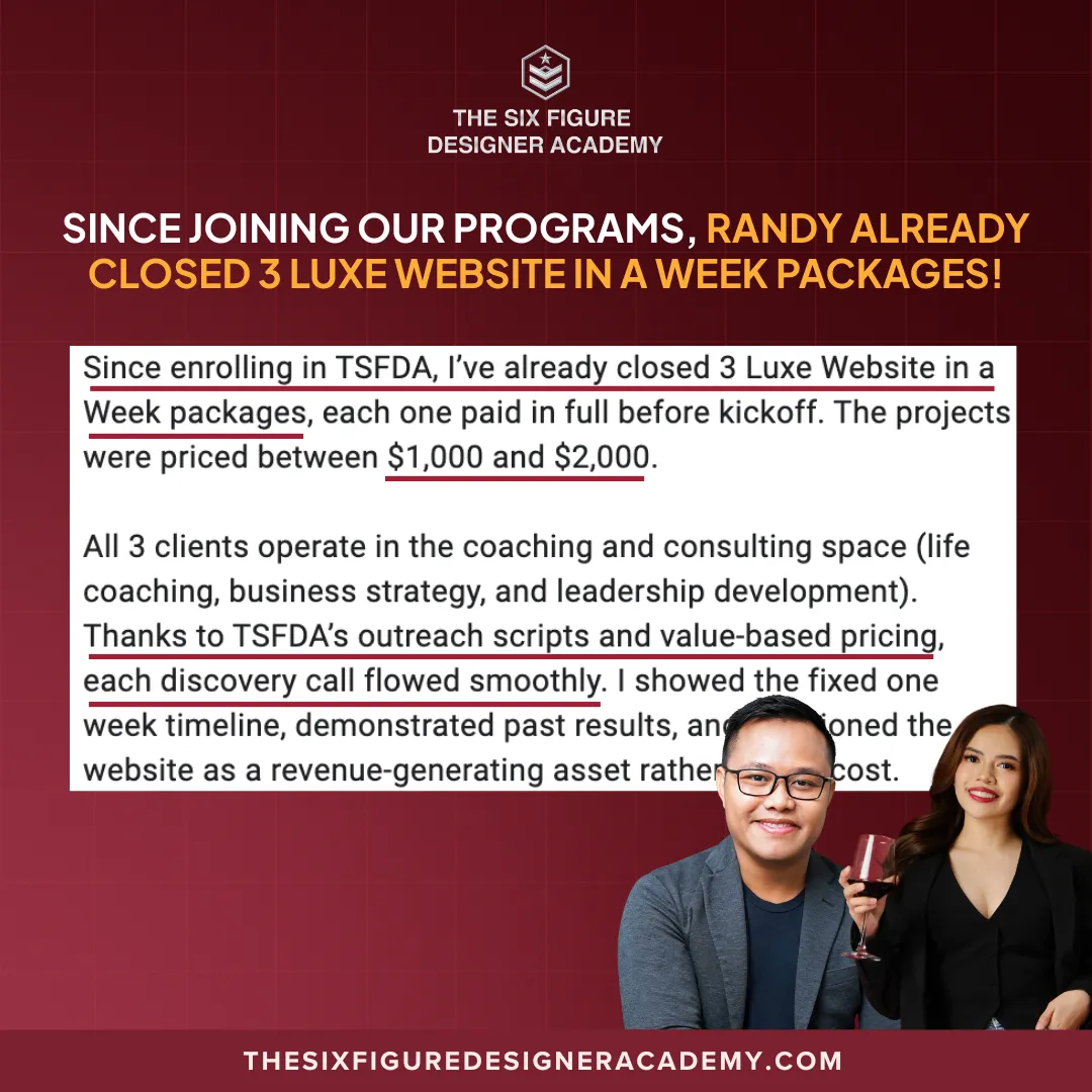 And the results? I started booking 2-3 Website in a Week projects every month, charging $1,800–$2,000 USD per client, and hitting consistent six-figure months.